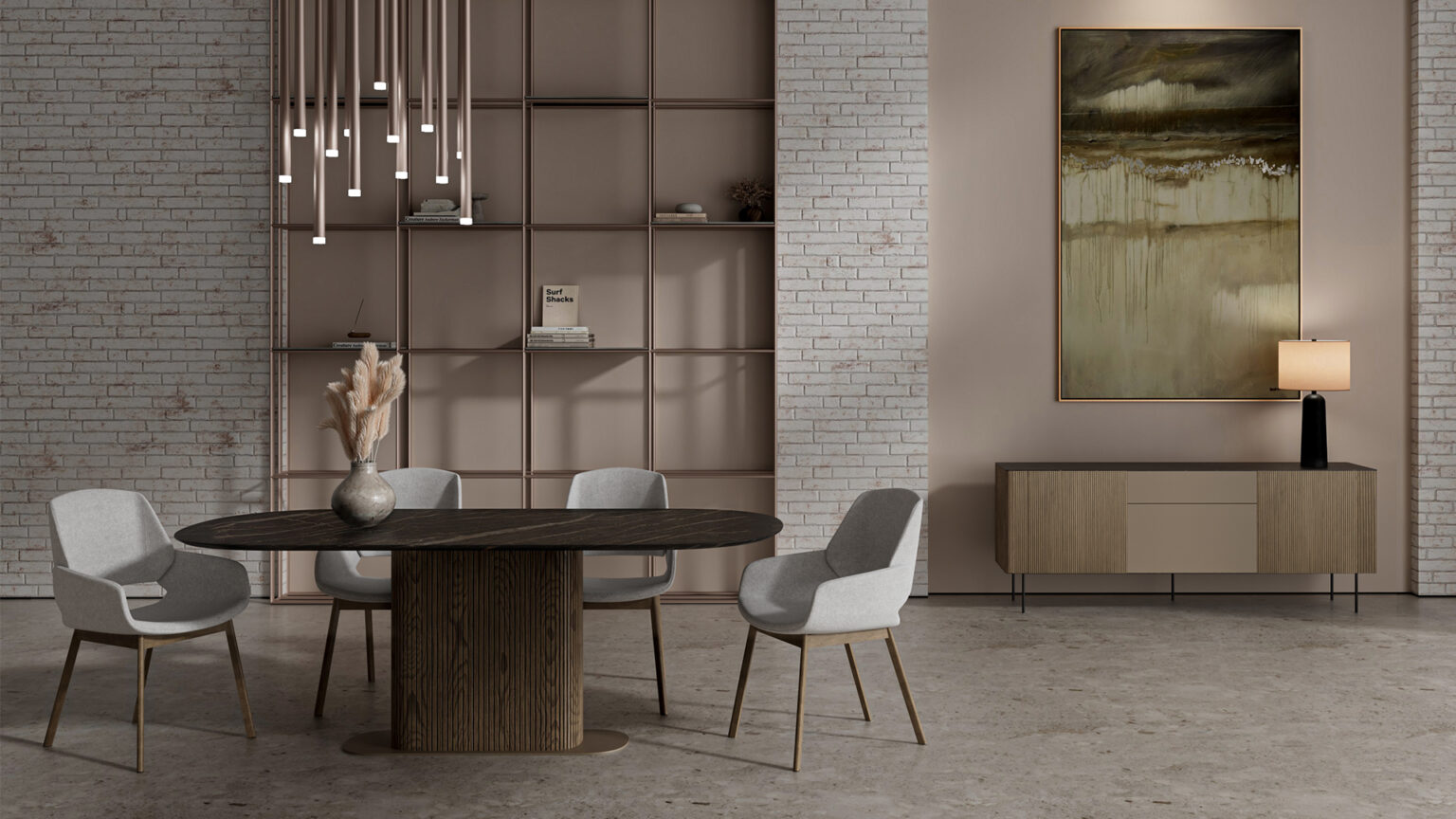- Τραπεζαρία Boston με κεραμική επιφάνεια σε συνδυασμό στην βάση με φυσικό ξύλο δρυός